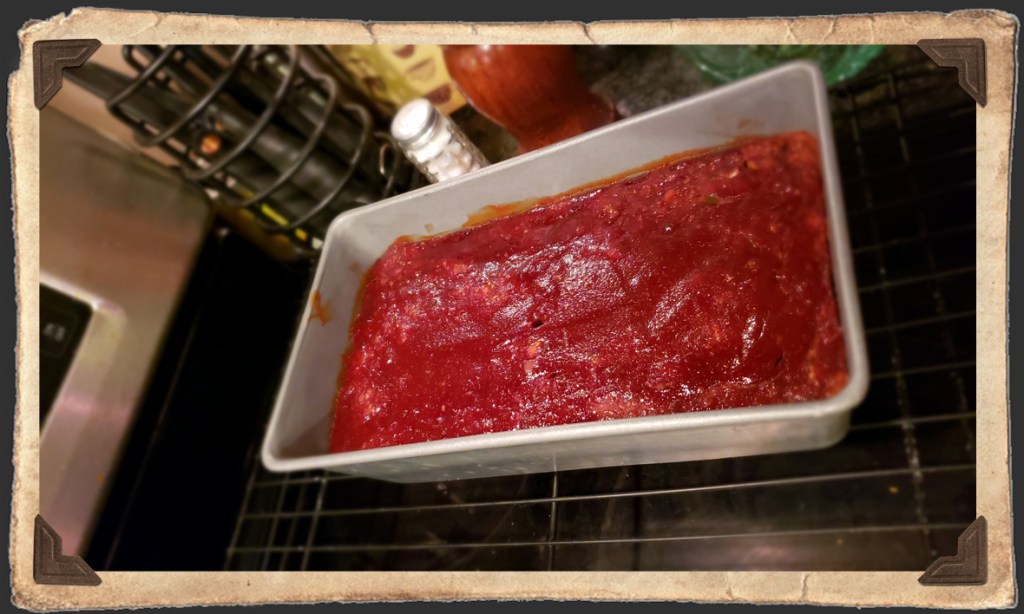 Pour into a loaf pan and top with enough BBQ sauce to create a thick layer. Any leftover BBQ sauce can be used for dipping later.