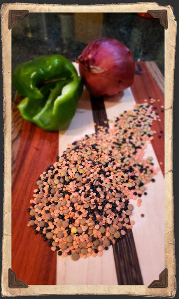 - 1 cup dried lentils, rinsed (I used tri-color lentils)