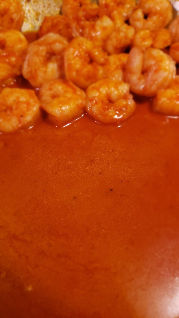 Turn off burner and add the last 2 tablespoons of the butter. With a fork or spatula, slowly swirl the butter around until it is fully melted. Continue to stir shrimp in the sauce every few minutes as the sauce thickens. Sauce should be silky and well-blended with the spices.