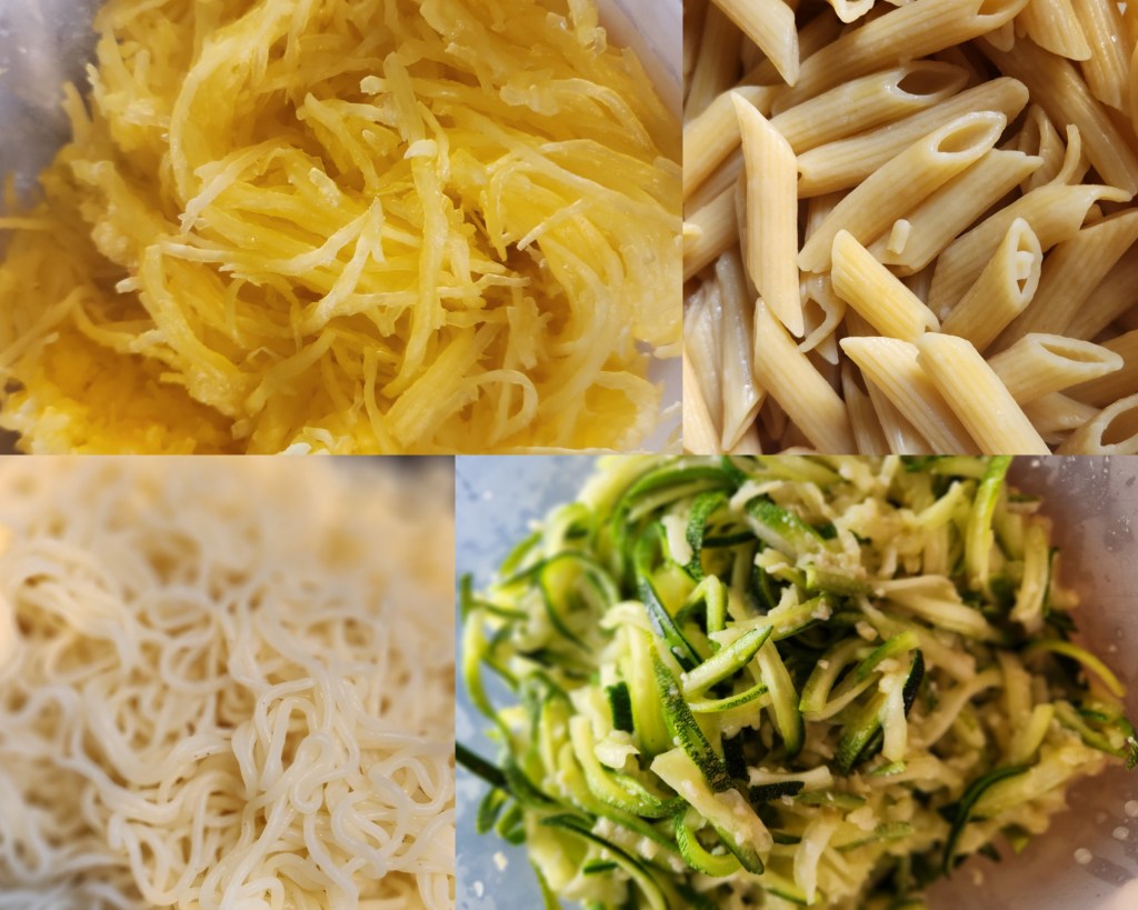 Bake at 400 for about an hour or until flesh is tender and flakes off with a fork. Goes great with ground turkey, sauce, and a sprinkle of Parmesan cheese.