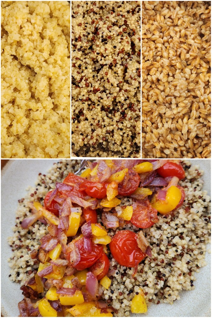 Quinoa is actually the edible seed of the flowering plant in the amaranth family. It’s prepared and eaten similarly to a grain, so that’s usually how it’s referred. For best flavor, rinse thoroughly, then boil in a 1:2 seed to water ratio for about 20 minutes, or until outer casing has separated from seed and quinoa is palatable. This grain screams Mediterranean and I love serving it under a simple stir fry of veggies (sweet peppers, cherry tomatoes, red onion) and feta cheese. Add a light fish or lean chicken / pork for a heartier dish.